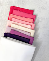 - Color: Nine 1/4 yard cuts of Confetti Cotton Solids in Putty, Frosting, Peony, Coral, Raspberry, Hot Pink, Princess, Orchid, and Eggplant.