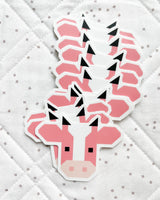 Inspired by the Annabelle quilt pattern, this fun sticker is the perfect addition to your life or as a gift for your quilty friends! Pick one sticker in your favorite color or get the full colorful herd.
