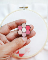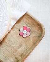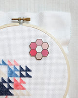 Inspired by my popular Hexie Blooms quilt pattern, this pink needle minder will make your need easy to find during your needlework projects. Simply place the needle on the minder and the magnet on the back will hold it in place.