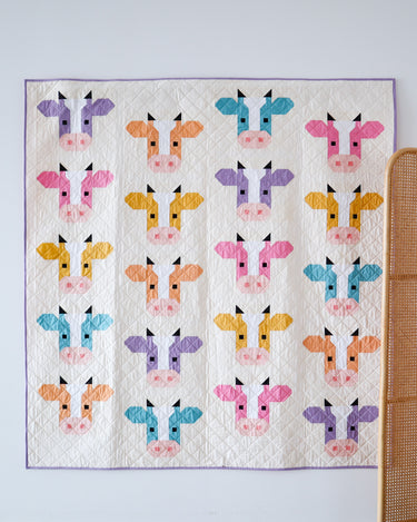 She's quirky, she's fun - meet Annabelle. This traditionally pieced quilt pattern features a playful and modern cow design. Get creative and let your imagination run wild with two fabric options - layer cakes or fat quarters - and three sizes.