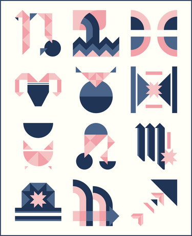Four designers have come together to bring you 12 Zodiac-inspired quilt blocks. You can purchase each block individually from each designer, or you can grab all 12 in the Cosmic Mini Quilt Bundle.