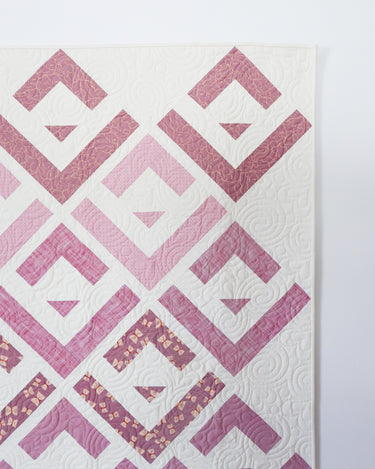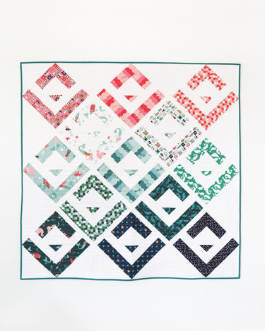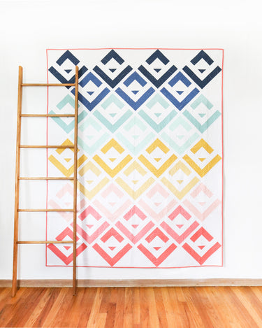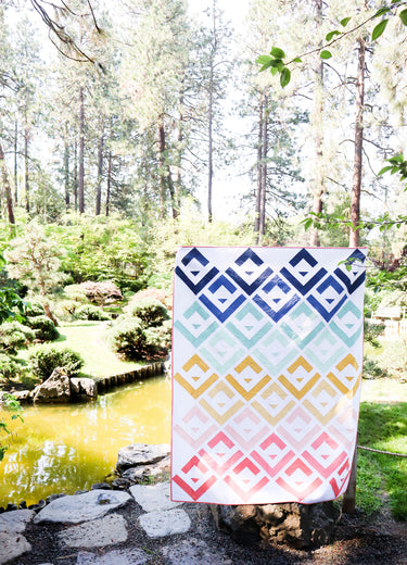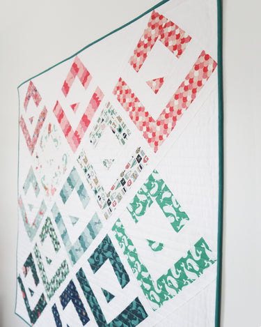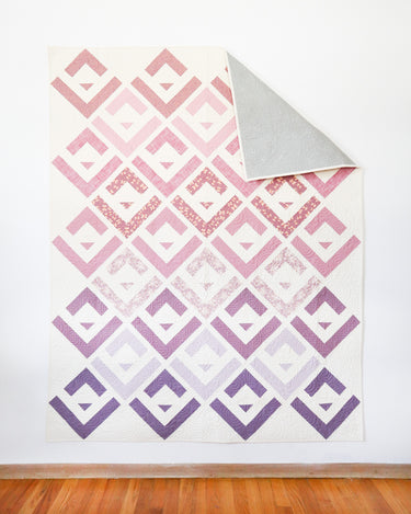 Cabin Valley quilt pattern is a fun and modern take on the classic Log Cabin quilt block. The pattern includes two design layouts: Modern Ombre and Scrappy which is precut friendly!