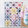 The Starly quilt pattern combines modern and classic quilt patterns for an eye-catching look. The classic sawtooth star block pattern is wreathed, creating a secondary design that adds a touch of modernity and a distinctive aesthetic.